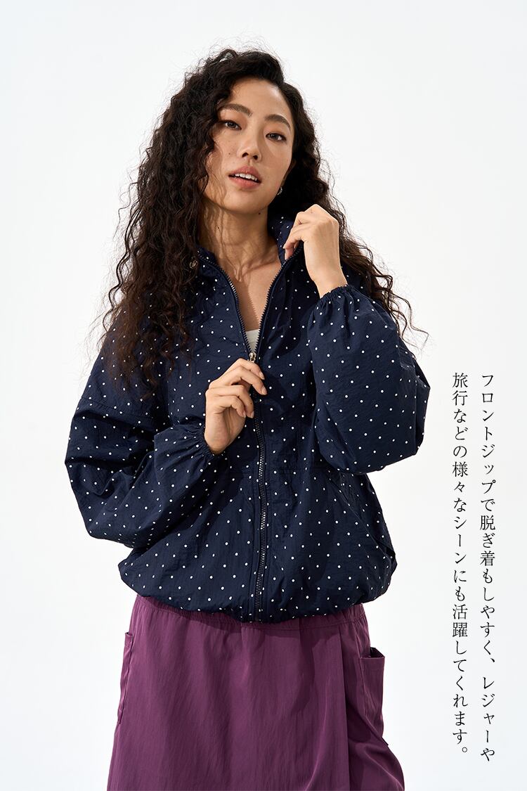 ムクユーmukuu UV パーカー ドット柄フード付きウインドブレーカージャケット 薄手 長袖アウター 紫外線対策 速乾 通気 軽量 日焼け止め