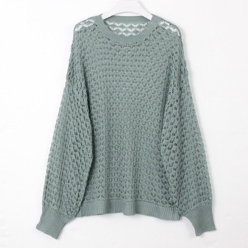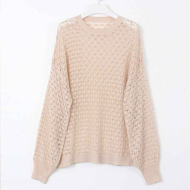・"涼しげな透かし編みのメッシュニットトップス、今年らしく幅のゆったり感は抑えつつ、