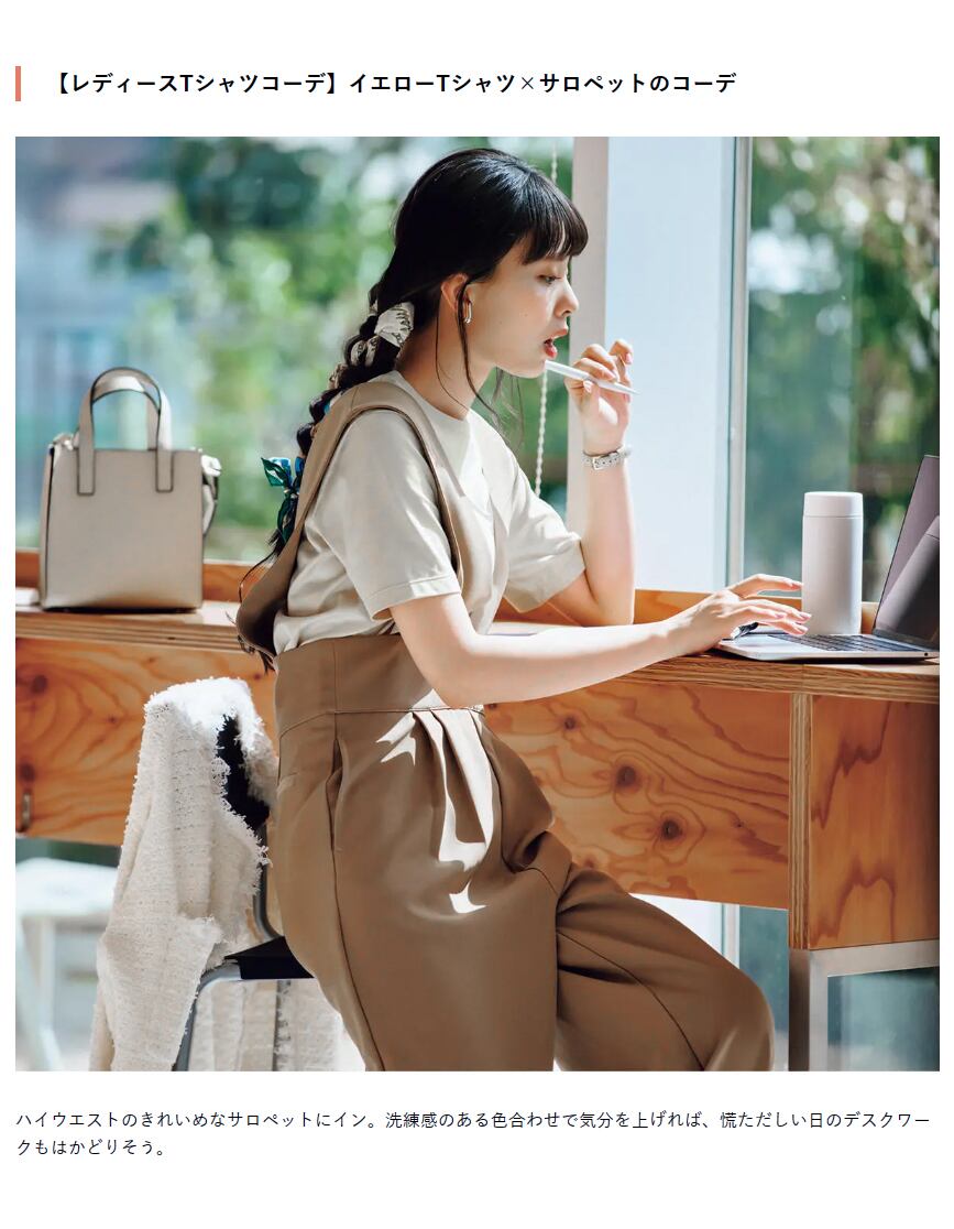 ☑︎お仕事シーンなら、くすみ色Tシャツできれいめに