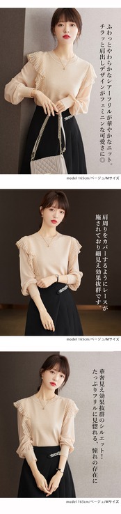 ムクユーmukuu レディース 可愛い リラクシー ラッフルフリルスリーブ 長袖 トップス きちんと トレンド ボリューム リラクシー フォーマル シーン 柔らかい カジュアル 可愛い 長袖 体型カバー ハンサム すっきり モード
