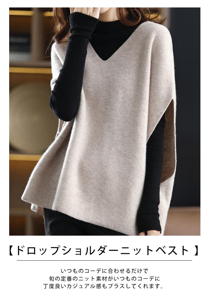 ムクユーmukuu レディース ベスト リラクシー ドロップショルダー Vネック ベスト レディース シンプル 無地 ファッション ニットベスト 春 大きいサイズ 秋冬 ニット トップス ベスト vネック 春 おしゃれ カジュアル レイヤード