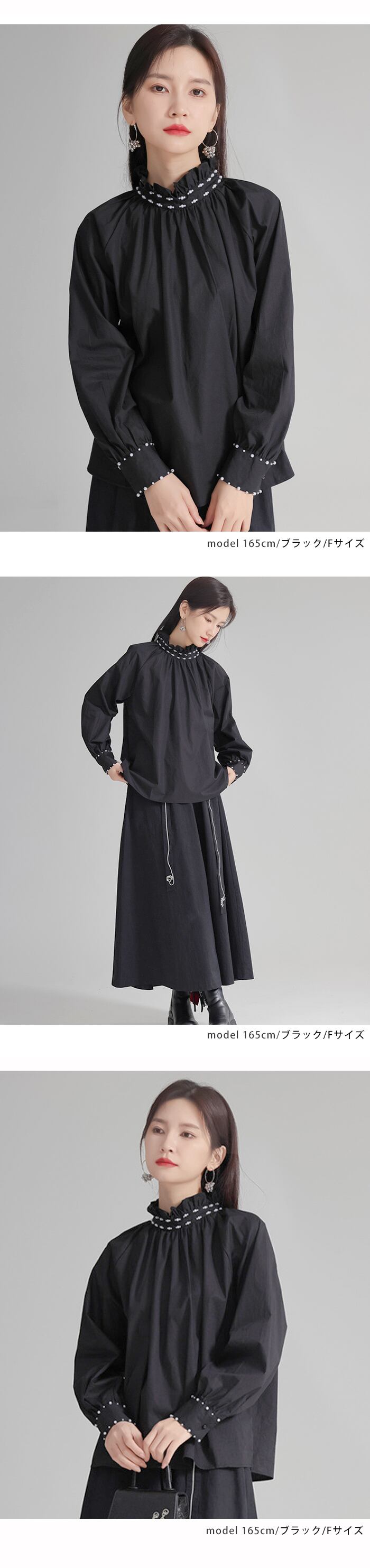 ムクユーmukuu パール付き ブラウス レディース パール フォーマル トップス シャツ 長袖 ギャザー ブラウス レディースブラウス 長袖ブラウス フォーマルブラウス オフィスブラウス ブラウスオフィス エレガント 華麗 ギャザー Aライン