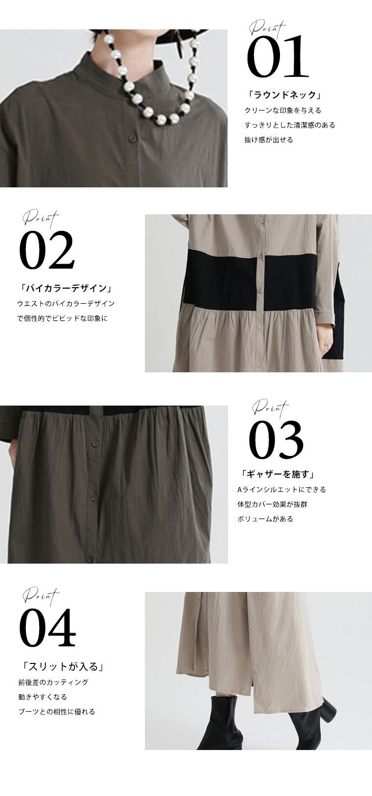 ムクユーmukuu 大人可愛い きれいめ シンプル カジュアル 個性的 綺麗め 体型カバー エレガント こなれ感ワンピース シャツワンピース ロング丈 長袖 バイカラー 上品 おしゃれ お洒落 かっこい 大人女子 個性的 クール モード系 主役級