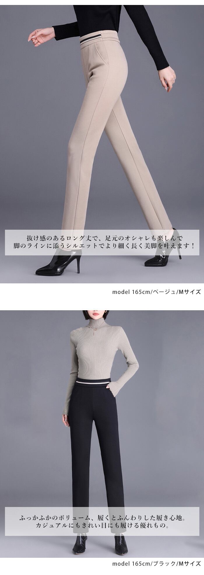 ムクユーmukuuレディースパンツ裏ボア ストレート パンツロング ストレートパンツ 美脚 暖かい 保温性 大人キレイめリラクシー フォーマル 通気性 きちんと感 長く美脚 カジュアル職場 美しいシルエット ウエストゴム