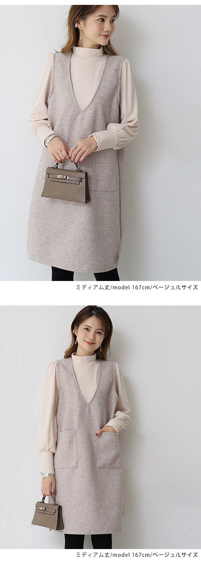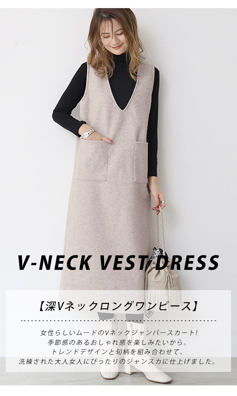 ムクユーmukuuジャンパースカート 2丈 膝丈 秋 冬 大人 スカート 重ね着 カジュアル 秋冬 きれいめ 大きいサイズ ロングベスト ワンピース ジャンスカ ポケットVネック オールインワン レディース ロングワンピース 大人可愛い
