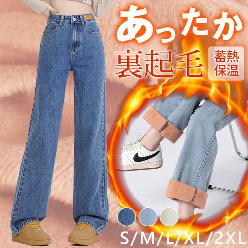 ムクユーmukuuパンツ 蓄熱 裏起毛 シンプル ワイド デニム ベーシック パンツレディース ハイウエスト 暖かい 抜群の暖かさパンツ 冬 ハイウエスト 防寒 大きい 吸水速乾 断熱性 フィット感 ルーズ サイズ感 脚長効果 ゆるさ お洒落