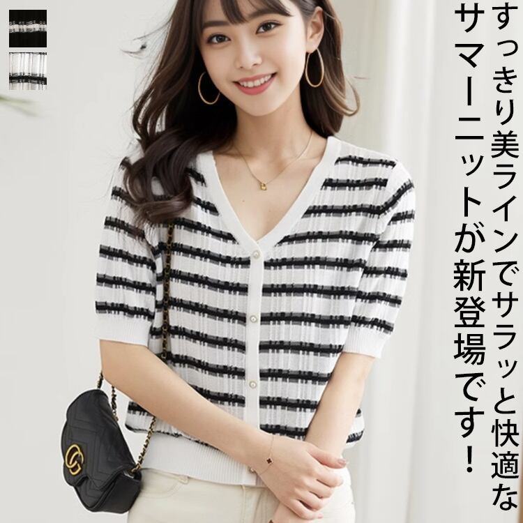 ムクユーmukuu柔らかくボーダー ニットトップス プルオーバー オールシーズン かわいいオシャレ レディース vネック ニット ゆったり 体型カバー 滑らかなシャツ 抜け感 洒落感 ニット トレンド トップス