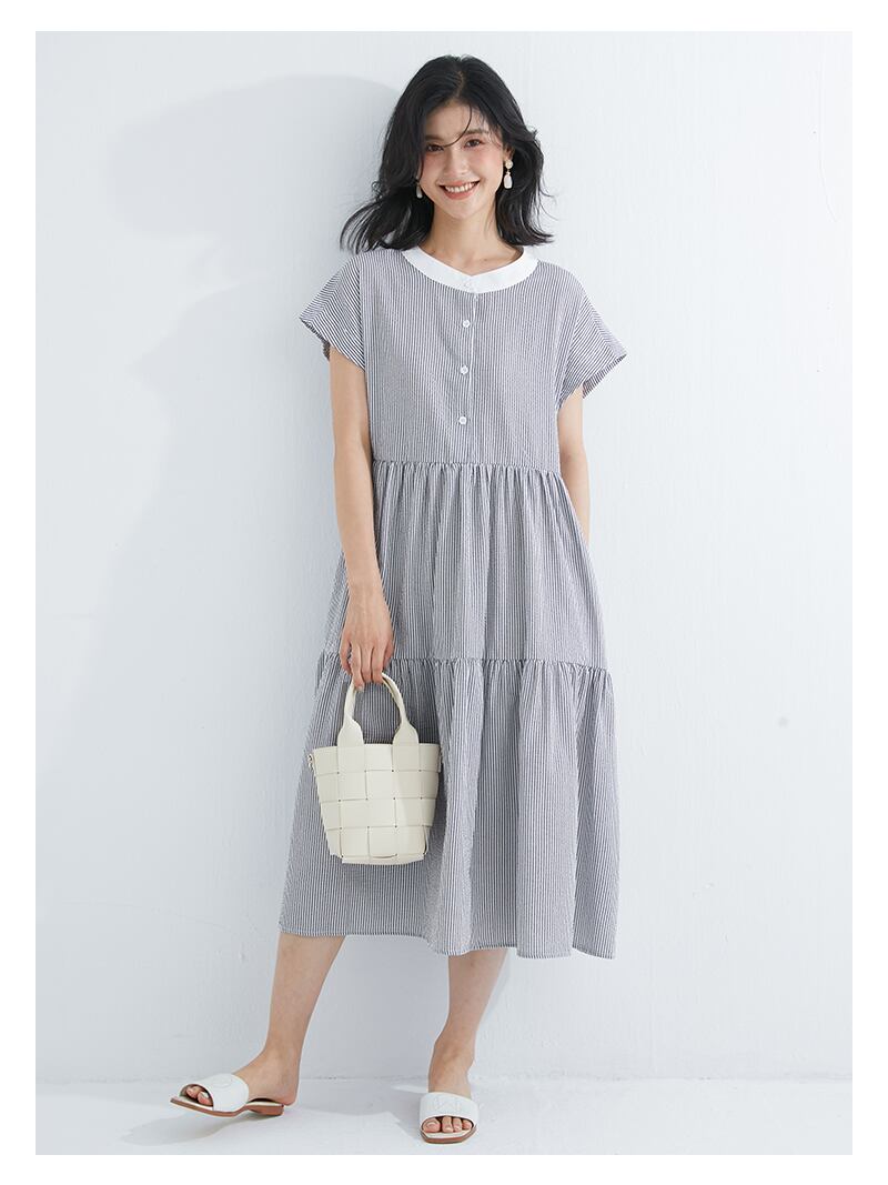 ムクユーmukuu レディース ワンピース切り替え リラクシー かわいい 綺麗 プリーツロングワンピース ワンピ サイドプリーツ プリーツ プリーツワンピース クルーネック 切替 大人 着痩せ 体型カバー 着回し 華奢見せ 可愛い 細見せ お洒落 楽ちん ゆったり