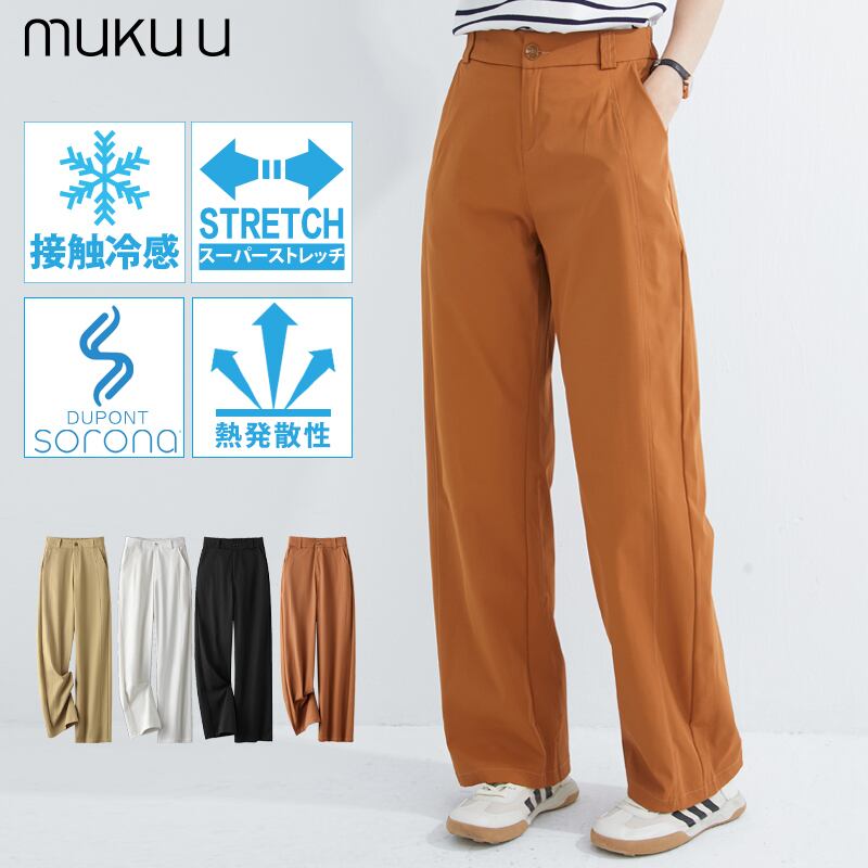 ムクユーmukuu レディース パンツ 美しいシルエットストレート 職場 ロング オールシーズン 爽やか パンツ ロング 美脚大人 キレイめ リラクシー フォーマル 通気性 きちんと感 長く美脚 カジュアル涼しい 薄手