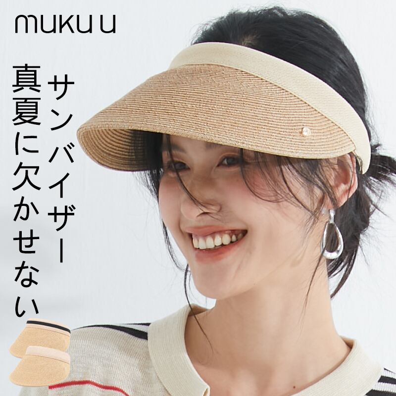 ムクユーmukuu レディース 帽子 折りたたみ UVカットサンバイザー カジュアルスタイルオフィスリラクシー きれいめ甘くかわいい抜け感 いい着心地柔らかい印象 オシャレきれいかわいい