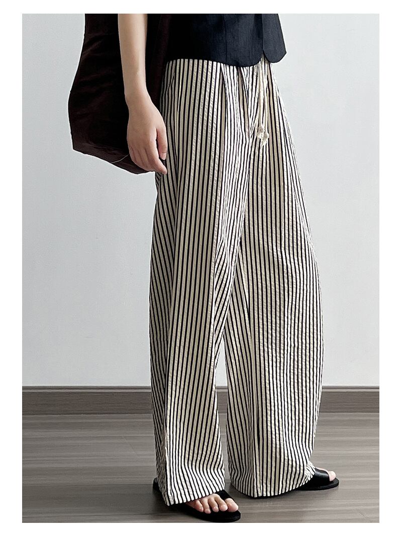 ムクユーmukuu レディース ワイドパンツ ストライプ ゆるっと リラクシー 立体感キープ 美しいシルエット大人 キレイめ リラクシー フォーマル 通気性 きちんと感 長く美脚 カジュアル 職場 ロング オールシーズン 爽やか 涼しい 薄手 ストレートパンツ ロング 美脚