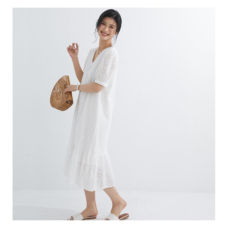 レディース ワンピース ロングワンピース ワンピ Vネック 大人 着痩せボタン Vネック 柔らかい 爽やか 涼しい 体型カバー 着回し 華奢見せ 可愛い 細見せ お洒落 楽ちん ゆったり