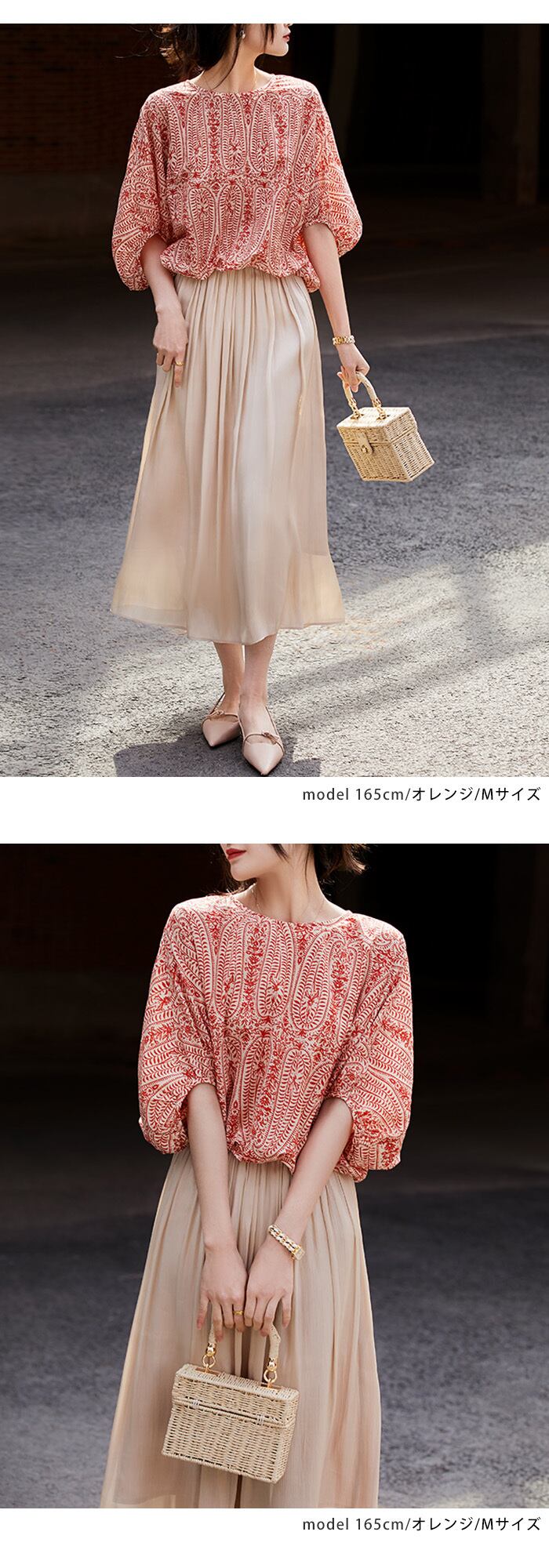 ムクユーmukuu レディーストップス 後ろ紐 花柄 ラウンドネック カジュアルスタイル 半袖 リラクシー きれいめ甘くかわいい抜け感 いい着心地柔らかい印象 オシャレきれいかわいいブラウス 体型カバー オフィスディリー