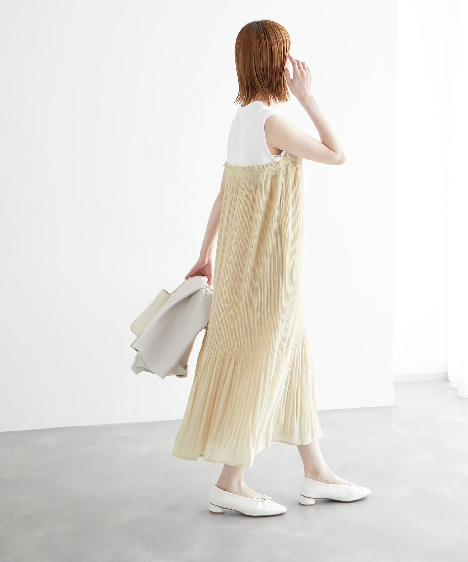 ムクユーmukuu レディース フレア 透け感 ワンピース ラウンドネック 半袖 ノースリーブ バイカラーデザイン ラウンドネック リラクシー いい着心地 柔らかい 夏物 爽やか 淑やか