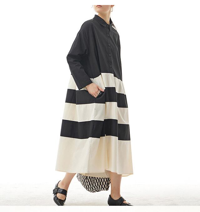ムクユーmukuu レディース ワンピース 薄手 襟付き 太めのボーダー柄 リラクシー雰囲気 柔らかい素材 上品爽やか品がある 夏物 リラクシー 上品 薄手 かわいい 綺麗