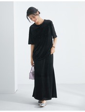 ムクユーmukuu レディースワンピース ワンピ ロング ラウンドネック 柔らかい素材 上品爽やか品がある 夏物 リラクシー 上品 薄手 かわいい 綺麗