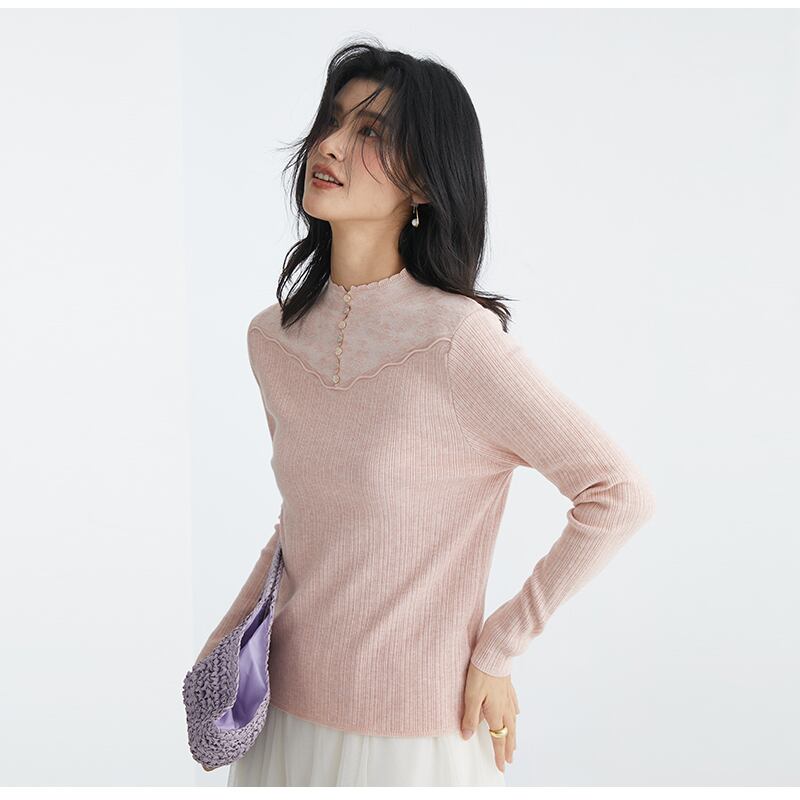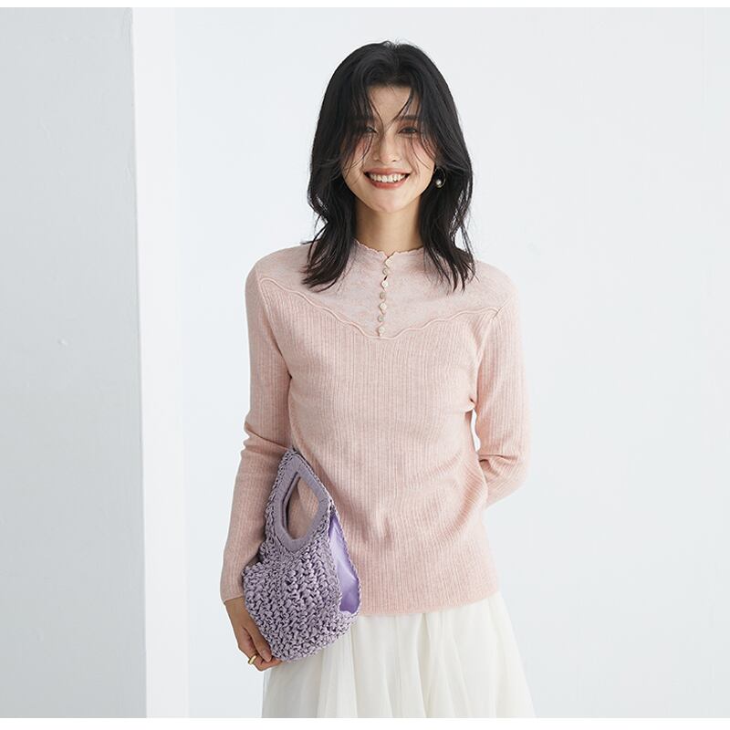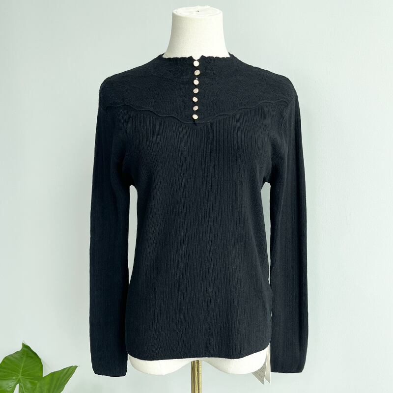 ムクユーmukuu レディースニット トップス薄手 長袖 パール 体型カバー きちんと感 ラウンドネック ハートマーク 柔らかい素材 上品爽やか品がある 秋冬物 リラクシー 上品 薄手 かわいい 綺麗